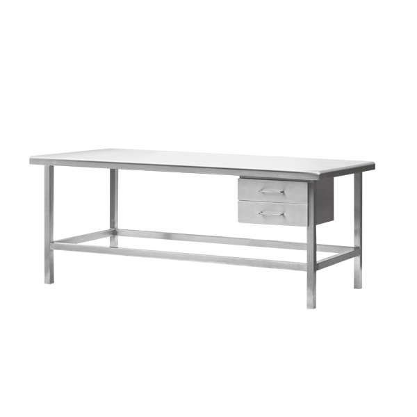 不锈钢工作台表面具有圆弧过度的边缘,以确保安全,重型可调式不锈钢搁板。